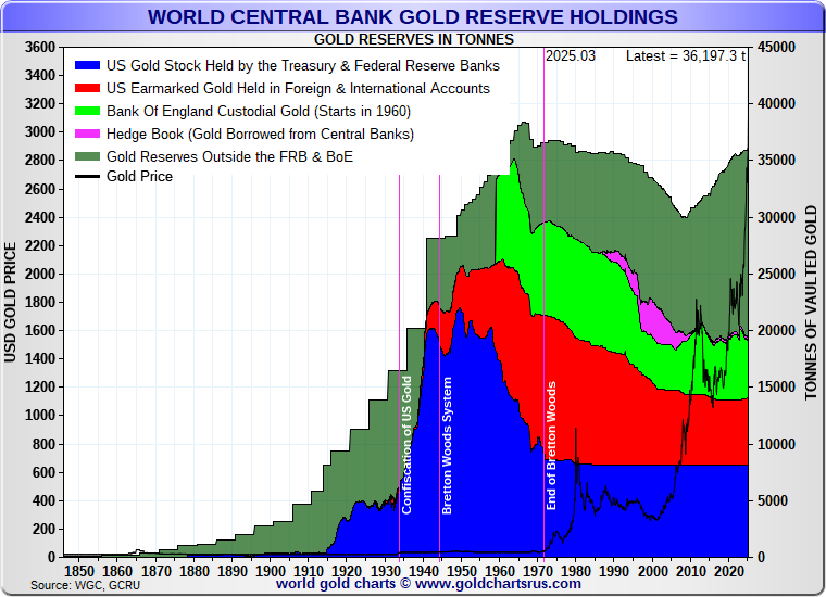 * Sum of Official Gold Reserves of Central Banks since 1845 :